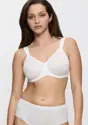 Vi har designet denne minimizer-bh med komfort og pasform for øje. Den er virkelig smuk, og så reducerer den synligt din barm med én størrelse.- Glansfuld jacquard med prikker